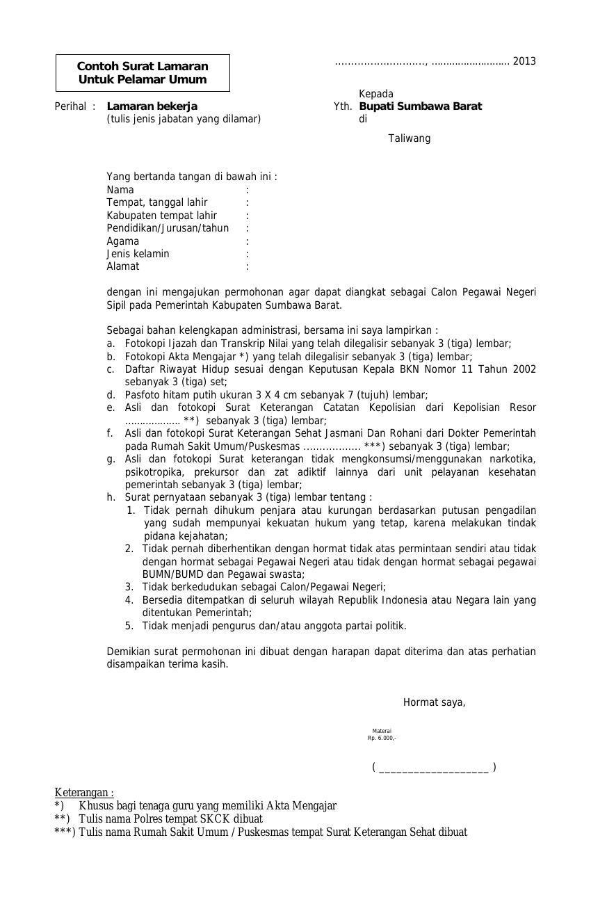 2 Surat Lamaran Pdf Archive from www.pdf-archive.com Surat lamaran kerja merupakan salah satu syarat untuk mendapatkan pekerjaan yang ingin anda dapatkan. Contoh surat lamaran cpns ini kami tulis sebagai bahan rujukan bagi kamu yang sedang mempersiapkan diri untuk mengikuti seleksi masuk sebagai pegawai negeri sipil (cpns). Contoh surat lamaran kerja yang baik dan benar untuk melamar pekerjaan di berbagai instansi baik bumn maupun swasta lengkap dengan file.doc siap untuk didownload dan diprint out/cetak. Contoh surat lamaran kerja umum, simple, tulis tangan, terbaru, yang format dari contoh surat lamaran kerja sangat mempengaruhi diterima tidaknya kita ketika sedang melamar di perusahaan. Sebelum membuat surat lamaran kerja ada. Surat lamaran kerja adalah sebuah surat yang dibuat untuk keperluan permohonan kerja di sebuah sebelum ke pembahasan utama mengenai contoh surat lamaran kerja, sebaiknya kita ketahui. Baru saja menyelesaikan program pasca sarjana? Surat lamaran merupakan surat permohonan yang dibuat oleh para pelamar pekerjaan atau pencari kerja, kemudian dikirimkan terhadap suatu badan usaha maupun instansi untuk mendapat pekerjaan.